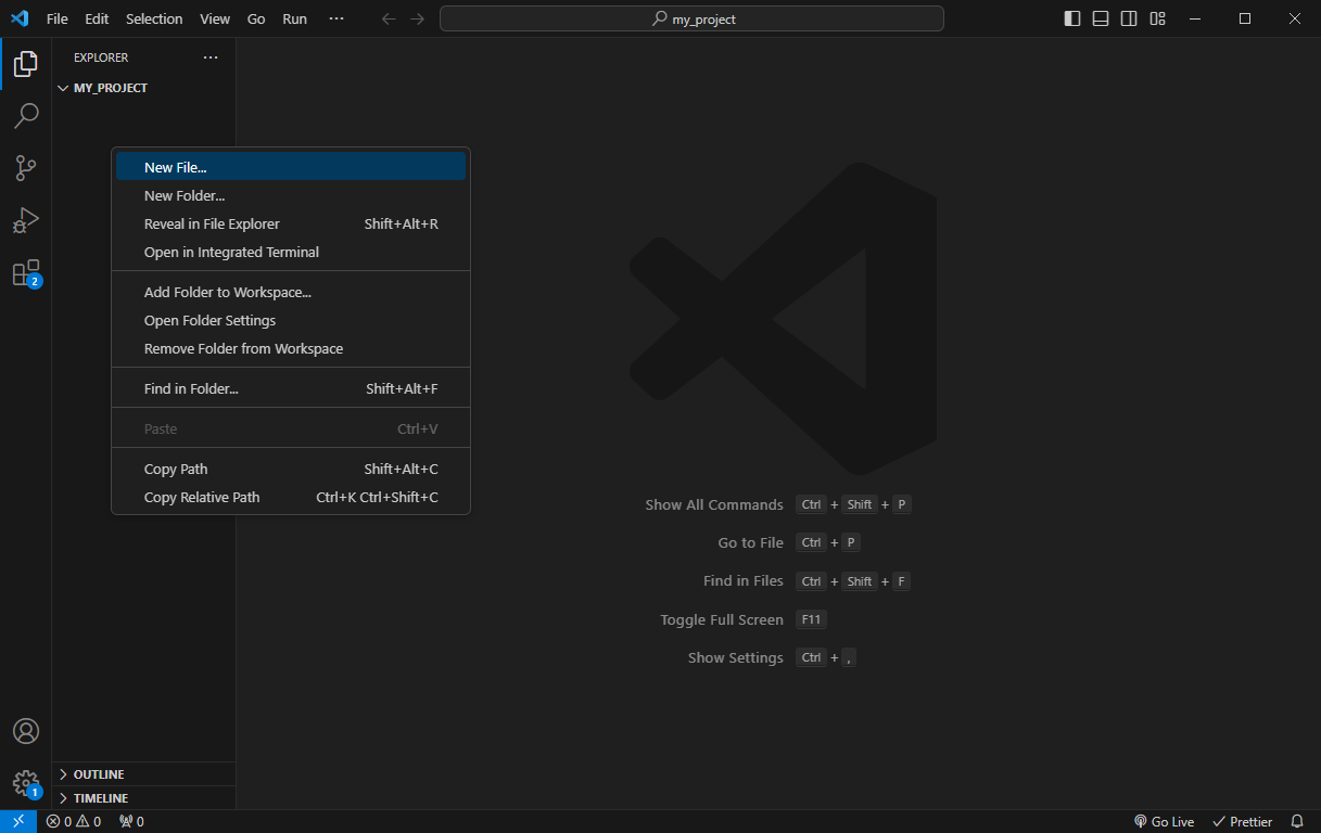 A partir de la, je pars du principe que vous avez un dossier vide ouvert dans VSCode, soit parce que vous savez faire, soit parce que vous avez suivi le guide ci-dessus.