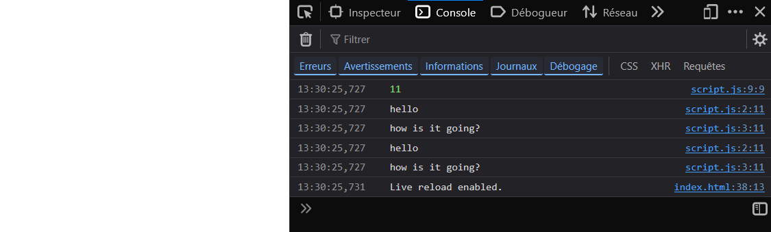 Il vous suffit de démarrer votre liveServer comme d'habitude et de vous concentrer uniquement sur le fichier script.js.