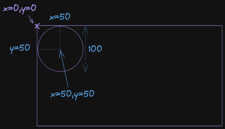 Vous remarquerez que le cercle est en haut à gauche de l'espace de dessin. C'est parce que le point (0,0) est le coin en haut à gauche.