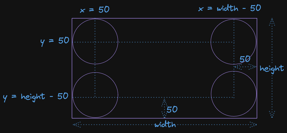 Pour nous aider, p5 créer une varibable width et une variable height.